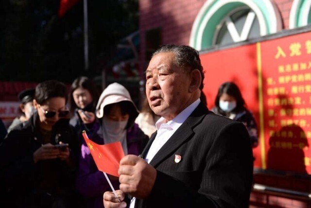 2022年6月22日,在校园里升国旗的沙勒克江大叔如愿成为了一名共产党员。