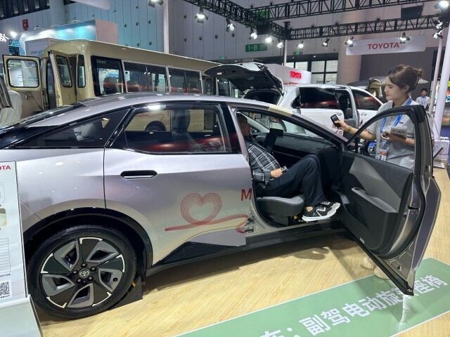 丰田此次展出的无障碍车成为西博会关注的亮点,精准切中行动不便人群的出行痛点。记者在现场看到,bZ3无障碍车副驾驶的旋转座椅吸引了不少市民体验,其中一位市民表示自己有购买需求,主要是方便家里老人出行。