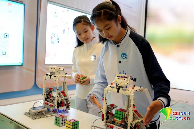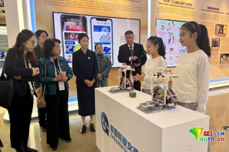 中国青年网北京10月18日电(记者 杨月)“花开中国,千朵万朵,每一个姑娘都是最美的颜色……”清澈的童声在中国妇女儿童博物馆婉转回荡。展厅另一侧,灵巧的机械臂有条不紊地转动,将打乱的魔方迅速还原。歌声与科技在此刻交织成一幅动人的画卷——这是2025年10月14日,全球妇女峰会配套活动“数智赋能妇女和女童成果展”上的温暖侧影。