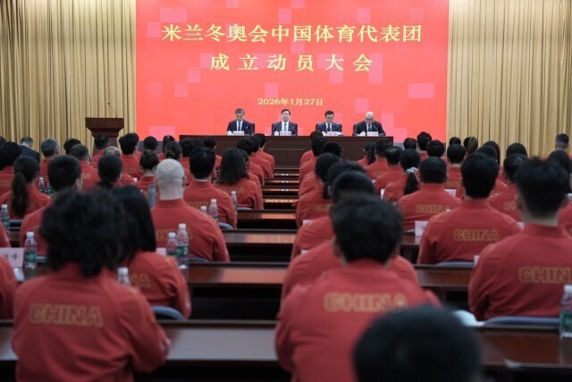 中国青年报客户端北京1月27日电(中青报·中青网记者慈鑫)今晨8时,第25届冬奥会中国体育代表团成立动员大会在北京举行。第25届冬奥会即将于2月6日在意大利米兰揭幕。据介绍,中国代表团共由286人组成,其中运动员126人(女子68人,男子58人),工作人员160人,将参加7个大项15个分项91个小项的比赛,是我国冬奥会境外参赛项目最多、运动员规模最大的一届。