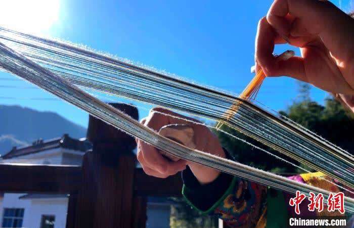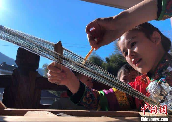 中新网湖州12月16日电(施紫楠 吴建勋)一块竹板、两根小圆竹段,一挑一拨间,五彩丝线翻飞于涂国佳的指尖。半个小时后,一条精美的畲族彩带初见雏形。
