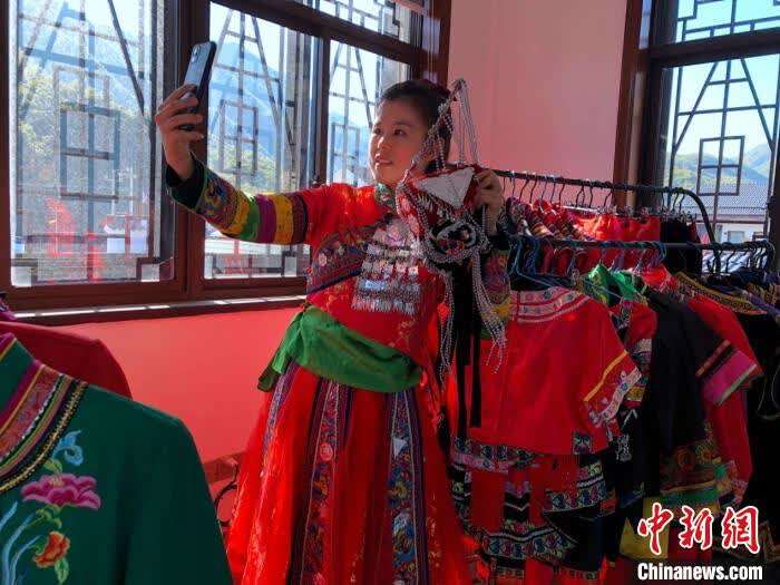 涂国佳拍摄短视频在抖音等平台上宣传畲族服饰 吴建勋 摄