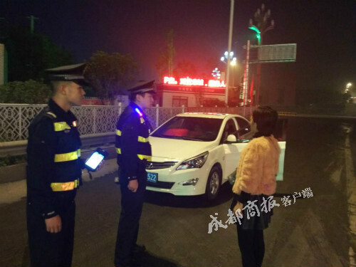据该女子讲述,副驾驶男子是自己的丈夫,由于酒喝多了就耍“酒疯”,强迫自己开车前往成都去,由于女子驾照还在实习期不能上高速就拒绝了丈夫的要求,于是丈夫就拿另外一把车钥匙自己开去成都,女子担心丈夫出事便亲自开车送他到成都。正当女子心里着急害怕的时候,在绵阳南收费站遇到了警察同志,便立刻刹车跑下车来向民警求助。