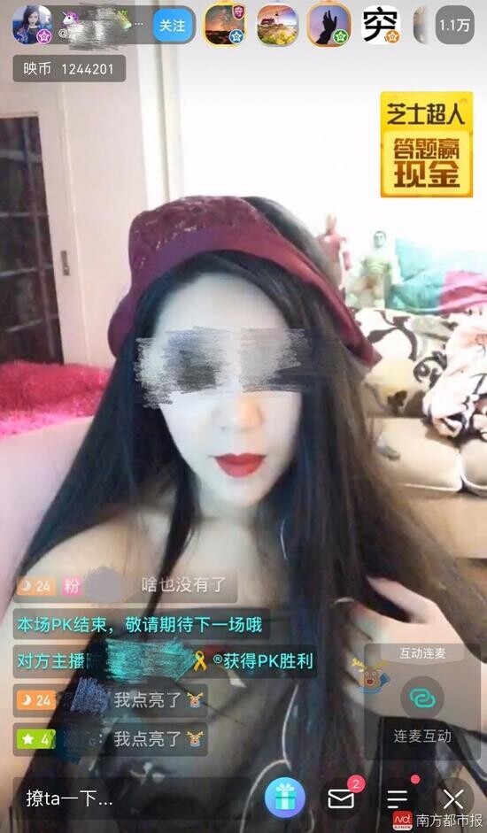 1月18日,南都记者在某直播中看到,不少衣着性感的主播在PK游戏时以抖胸(肩)、骑马、舔耳机线等方式作为对决内容,争夺观众投票,一位女主播一边抖一边强调,“说抖胸怕被封号,我们其实是在抖肩”。当晚,另一女主播在和男主播PK后落败,她按对方要求脱掉了内裤戴在头上。此前男主播落败时,她曾要求对方左手摸胸右手摸裆随音乐扭动。