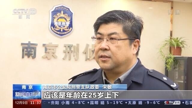 南京市公安局刑警支队政委 宋敏:犯罪嫌疑人应该是年龄在25岁上下,身高在1米70左右,有可能是从事体力劳动的这种对象,那么犯罪分子很可能具有流氓等劣迹前科,对犯罪现场有一定程度的熟悉。