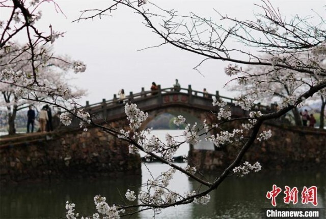 中新网无锡3月23日电 (记者 孙权)又是一年樱花盛开的时节。23日,在无锡太湖鼋头渚风景区内,三三两两的游人沐浴在和煦春风中,感受“花开雪满枝”的樱花盛放之美。与往日人头攒动的景象不同,受疫情和天气影响,今年景区樱花季遗憾“遇冷”。