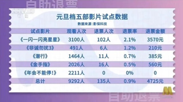元旦档期间五部参与试点的影片