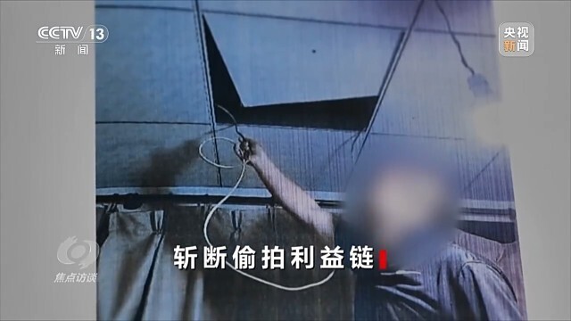 张宏远:我们发现装在酒店中央空调的空调通风口,犯罪嫌疑人先把空调的滤网拆下来,然后把摄像头跟空调的电源连接在一起,再把滤网装上去,作一个隐蔽,通过通风口的角度偷拍整个房间。