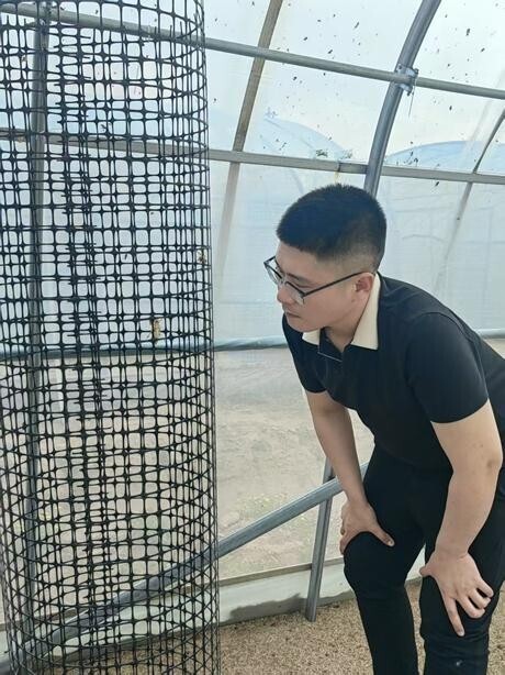 从梦洋在养殖大棚内。受访者供图