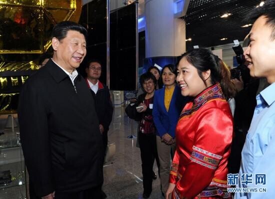 2013年5月4日,习近平来到中国航天科技集团公司中国空间技术研究院,同各界优秀青年代表座谈并发表重要讲话。(图片来源:新华社)