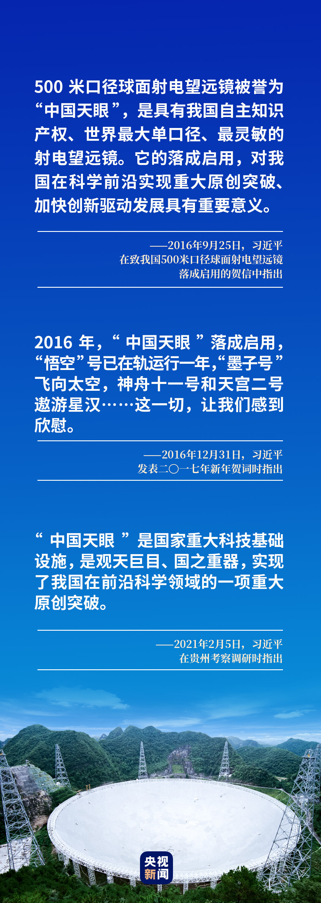 自落成启用以来,习近平总书记多次强调“中国天眼”的重要意义——