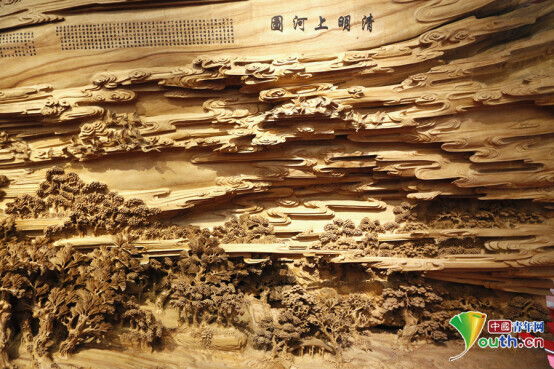 莆田木雕《清明上河图》局部。中国青年网记者 周学磊 摄