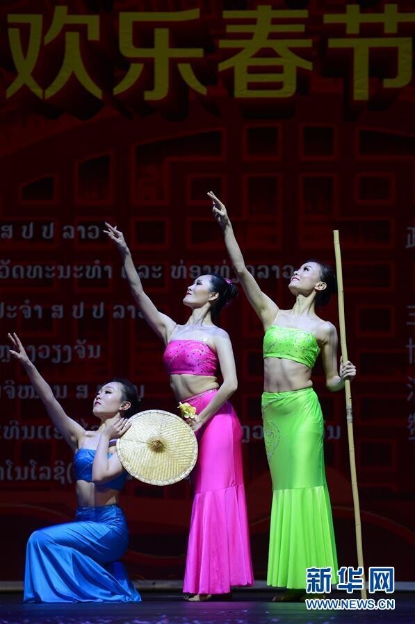 2月10日,在老挝首都万象,演员在“欢乐春节”庙会活动上表演舞蹈。当日,由老挝中国文化中心主办的2018年“欢乐春节”庙会活动在万象举行。 新华社发(刘艾伦 摄)
