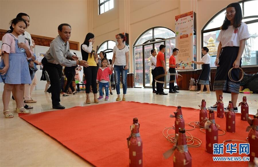 2月10日,在老挝首都万象,老挝民众在“欢乐春节”庙会上玩游戏。当日,由老挝中国文化中心主办的2018年“欢乐春节”庙会活动在万象举行。 新华社发(刘艾伦 摄)