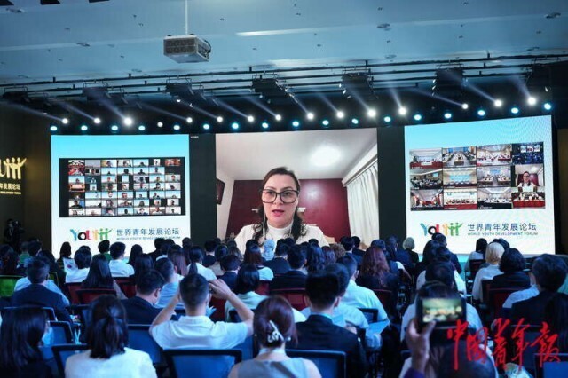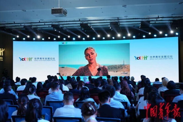 7月21日,北京,世界青年发展论坛全体会议上,俄罗斯青年事务署署长克谢妮亚拉祖瓦耶娃发表演讲。中青报·中青网记者李隽辉摄