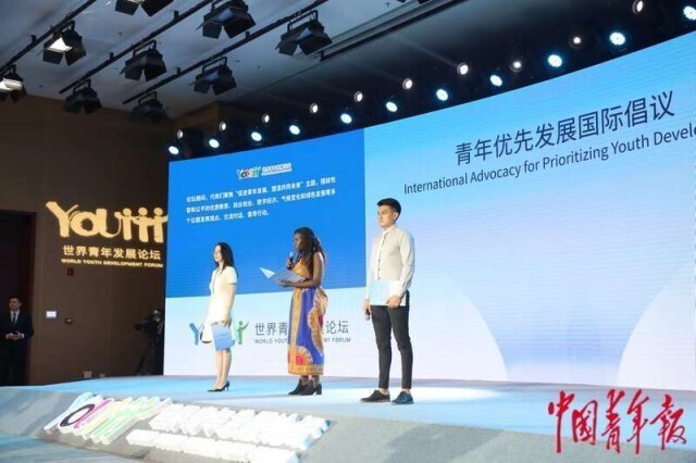 7月21日,北京,世界青年发展论坛上,青年代表发布《青年优先发展国际倡议》。中青报·中青网记者 赵迪/摄