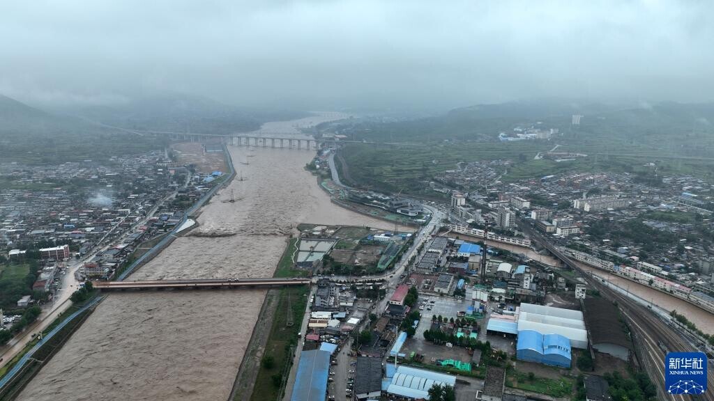 7月31日,位于河北省石家庄市井陉县境内的冶河正在泄洪。