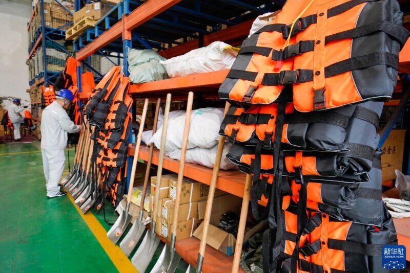 7月31日,工作人员在河北省遵化市一仓库整理防汛应急抢险工具。