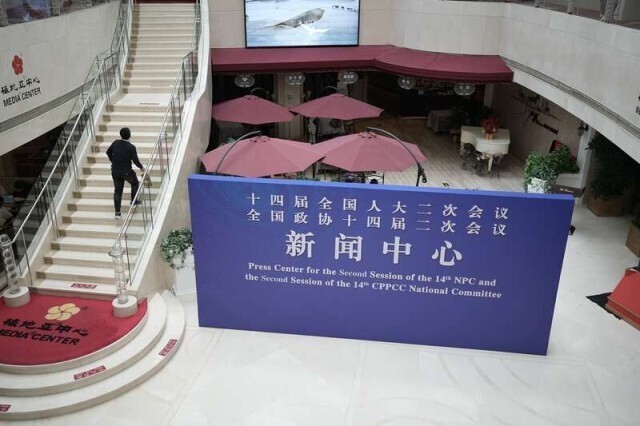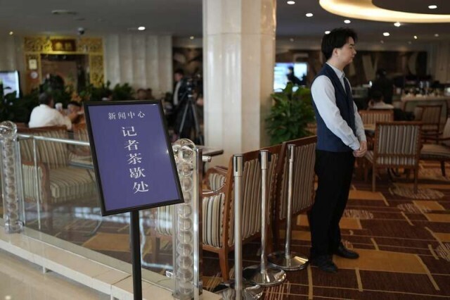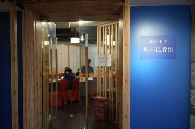 2月27日,北京梅地亚中心,境内记者组、港澳台记者组、外国记者组已做好为中外记者提供服务的准备。中青报·中青网记者 李隽辉/摄
