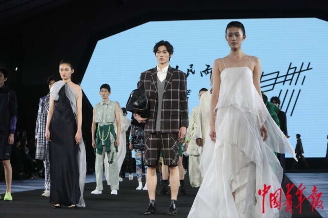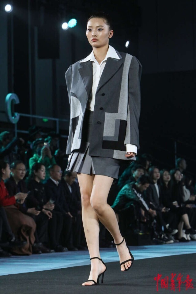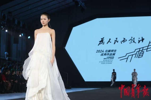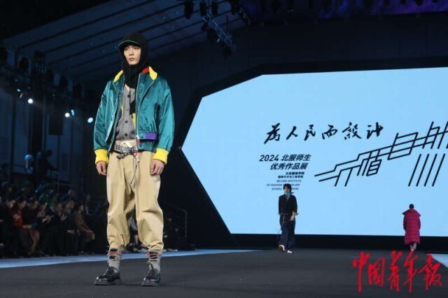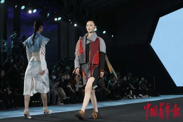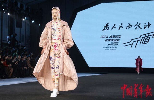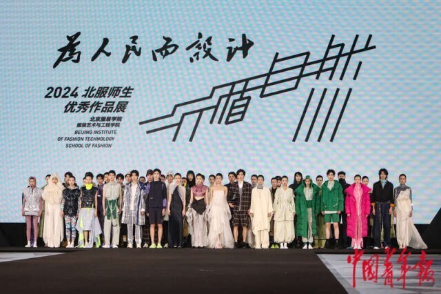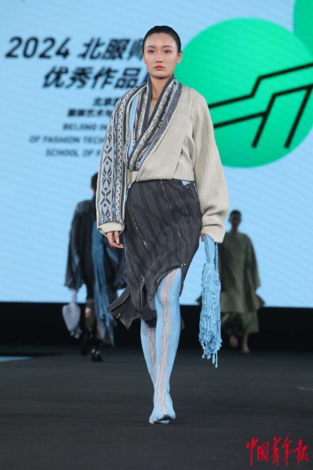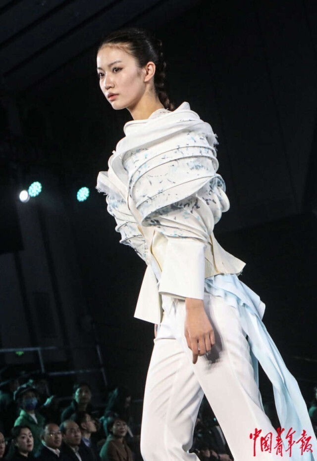 3月20日,北京正大中心,AW2024北京时装周“为人民而设计——行循自然”北服师生优秀作品秀现场,设计师作品集中亮相。中青报·中青网记者 孔斯琪/摄