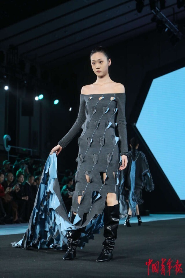 3月20日,北京正大中心,AW2024北京时装周“为人民而设计——行循自然”北服师生优秀作品秀现场,呈现北服师生设计的服装。中青报·中青网记者 孔斯琪/摄