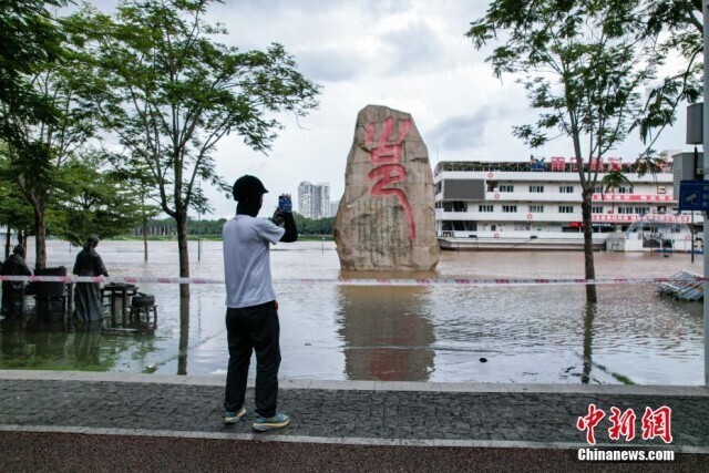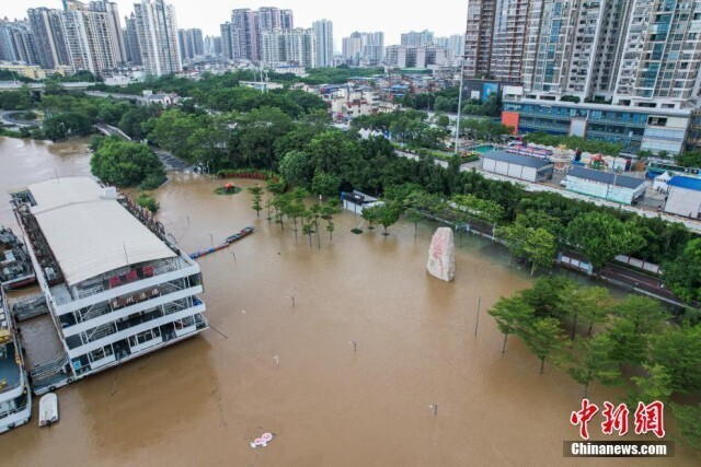9月9日,广西南宁邕江水位上涨,民生广场一带沿岸被淹。广西南宁水文中心南宁水文中心站当日升级发布洪水黄色预警,根据郁江上游左江干支流最新洪水情况分析,预计未来24小时—48小时,南宁多个河段将出现超警洪水,提请民众及有关单位加强防范,及时避险。