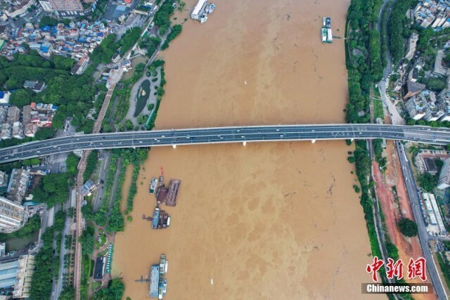 9月9日,广西南宁邕江水位上涨,沿岸地势低洼处被淹。广西南宁水文中心南宁水文中心站当日升级发布洪水黄色预警,根据郁江上游左江干支流最新洪水情况分析,预计未来24小时—48小时,南宁多个河段将出现超警洪水,提请民众及有关单位加强防范,及时避险。