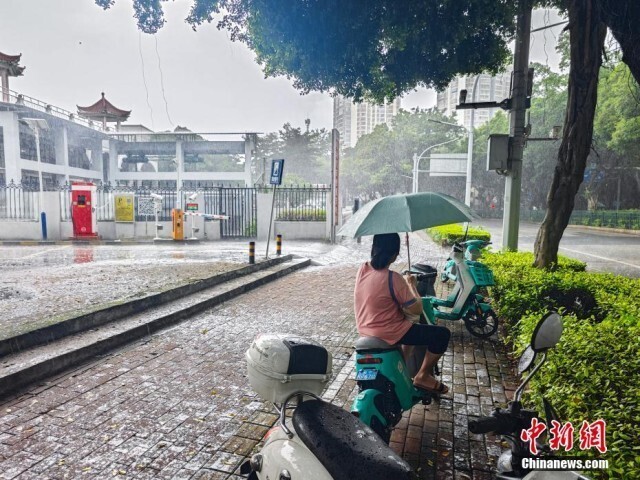 9月9日,暴雨天气影响广西南宁,市民在路边撑伞躲避。南宁市气象台9日15时55分发布暴雨橙色预警信号,提醒民众注意防范。