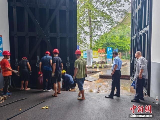 9月9日,广西南宁民生广场交通闸关闸防洪。广西南宁水文中心南宁水文中心站当日升级发布洪水黄色预警,根据郁江上游左江干支流最新洪水情况分析,预计未来24小时—48小时,南宁多个河段将出现超警洪水,提请民众及有关单位加强防范,及时避险。
