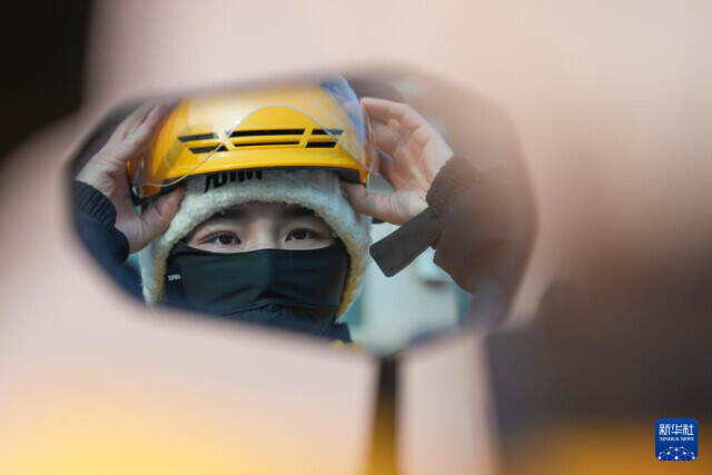 1月29日,戚德敏佩戴安全帽,准备开始一天的工作。
