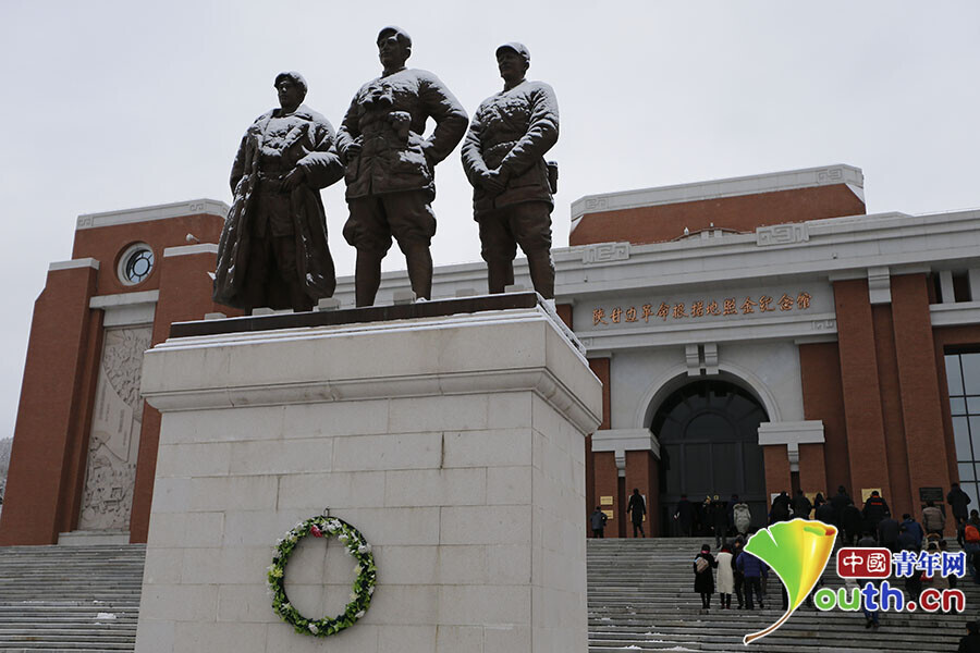 在陕甘边革命根据地照金纪念馆前,竖立着刘志丹、谢子长、习仲勋三位老一辈无产阶级革命家的塑像。中国青年网记者 李拓 摄