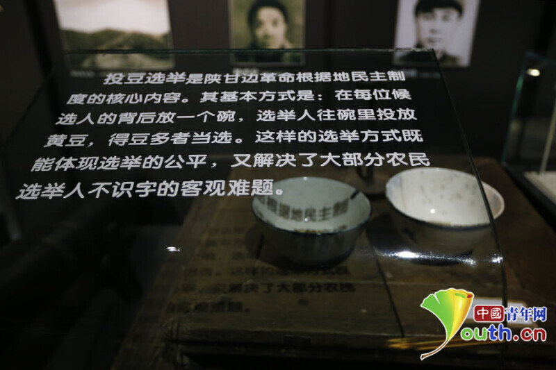 展厅内展示关于“投豆选举”的历史背景和展品。中国青年网记者 李拓 摄