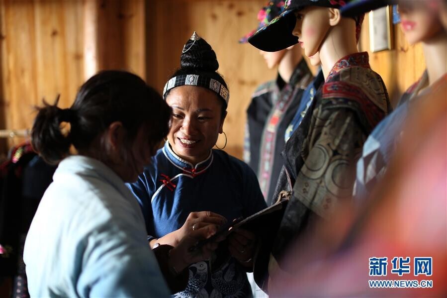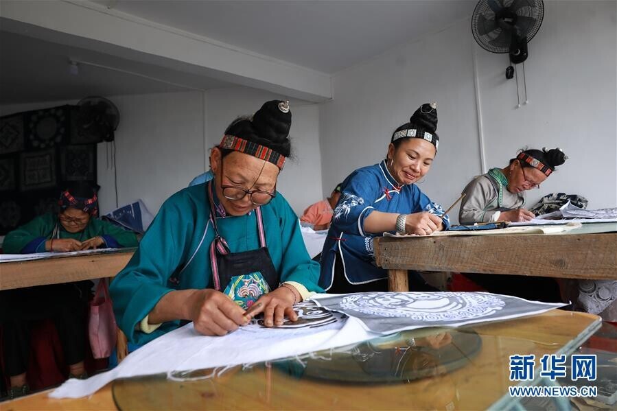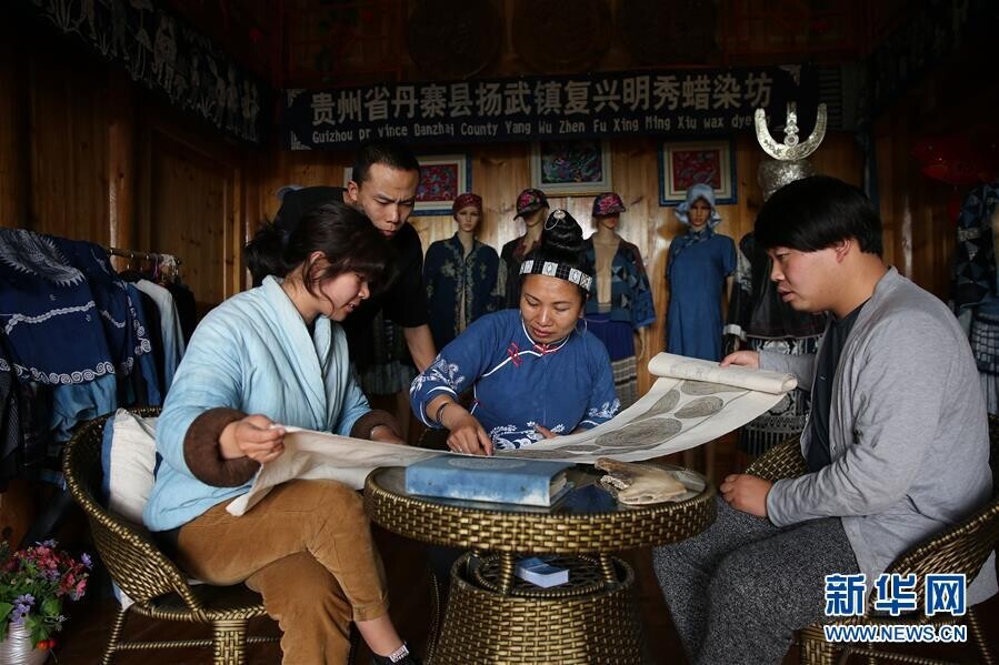 今年41岁的张世秀是贵州省黔东南苗族侗族自治州丹寨县扬武镇排莫村村民。2014年,在当地文化部门的扶持下,张世秀在村里创办了“明秀蜡染坊”,利用互联网接洽蜡染订单。近年来,张世秀了解到,国内外许多艺术家和设计师都想运用苗族传统蜡染技艺对自己的作品进行再创作,但又不知怎么与大山里的苗族画师们沟通、交流。于是她通过互联网和旅行社,把外面的艺术家吸引到大山里来,只要交付一定的费用,就可以在蜡染坊里住下来,专心创作。