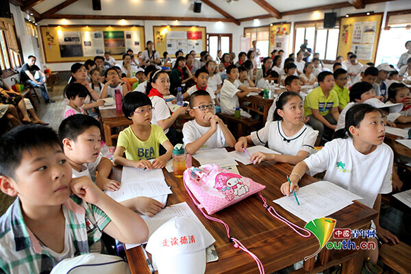 中国青年网北京7月20日电(记者李川 通讯员汪晨)“我叫沈彦浩、我叫杨凡灿、我叫高杉……”、“我属狗……我属猪……我属鸡……我也属鸡……”7月13日上午,在新安镇下舍村的一间会议室里,面对一群天真无邪的少年儿童,浙江师范大学学生陈蕾如在这里开始了自己的暑假社会实践角色——“春泥计划”志愿者。