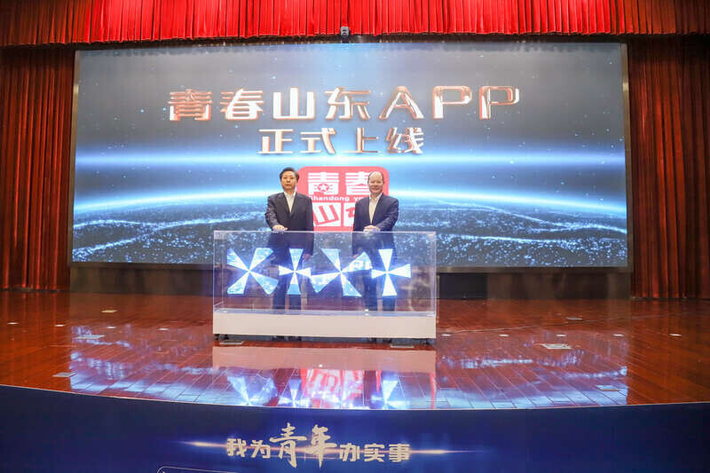 山东省政协副主席王艺华、中国建设银行公司业务总监张为忠共同启动上线“青春山东”APP