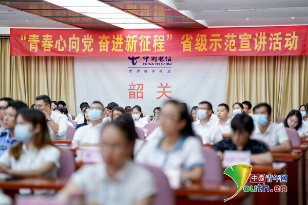 7月25日下午,由团中央宣传部指导,团广东省委主办、团韶关市委承办的“青春心向党 奋进新征程”省级示范宣讲活动在韶关市电信大楼开展。全市近600名团干、青年线上线下参加活动。