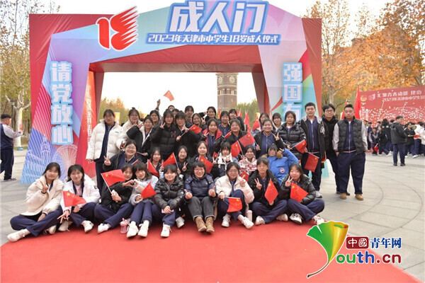 同学们跨过“成人门”后合影留念。团天津市委供图