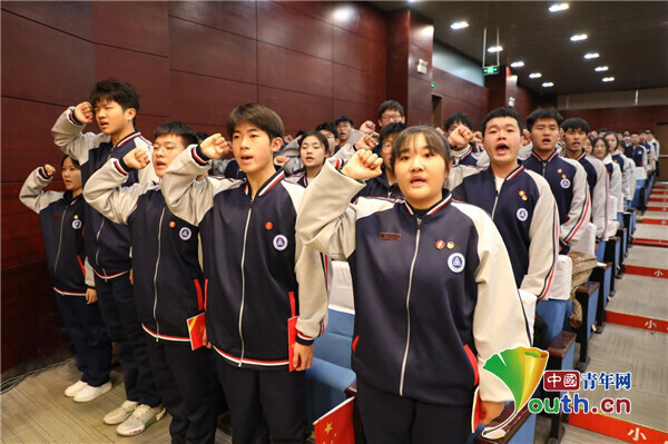 在学生代表领诵下,全体18岁青年一同向党和祖国献上了“请党放心,强国有我”的青春誓言。团天津市委供图