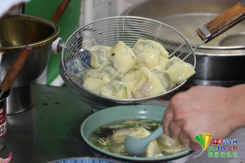 图为马兰阿姨在捞馄饨。中国青年网通讯员 余琳 摄