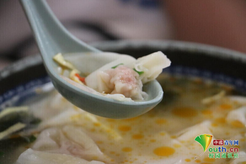 图为马兰阿姨拌秘制辣酱的开洋馄饨。中国青年网通讯员 余琳 摄