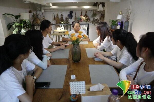 在遂昌花致花艺生活馆,创办人黄智英热情的向同学们介绍她从“小阳台”开始的创业故事:在杭州读大学时,她了解到“花店+咖啡”的独特经营模式,想到在自己的家乡遂昌从未见过这种店,她觉得这是一个很好的机会,能够将一种全新的事物带到家乡。从孕期在自家阳台种小多肉开始,再到花卉养殖大棚,然后开了这家轻食与花卉结合,采用“花店+咖啡”独特经营模式的生活馆。她强调,作为返乡青年创业需要具备不怕困难勇敢闯的精神。年轻人要多吃苦,多努力,多为家乡做贡献。