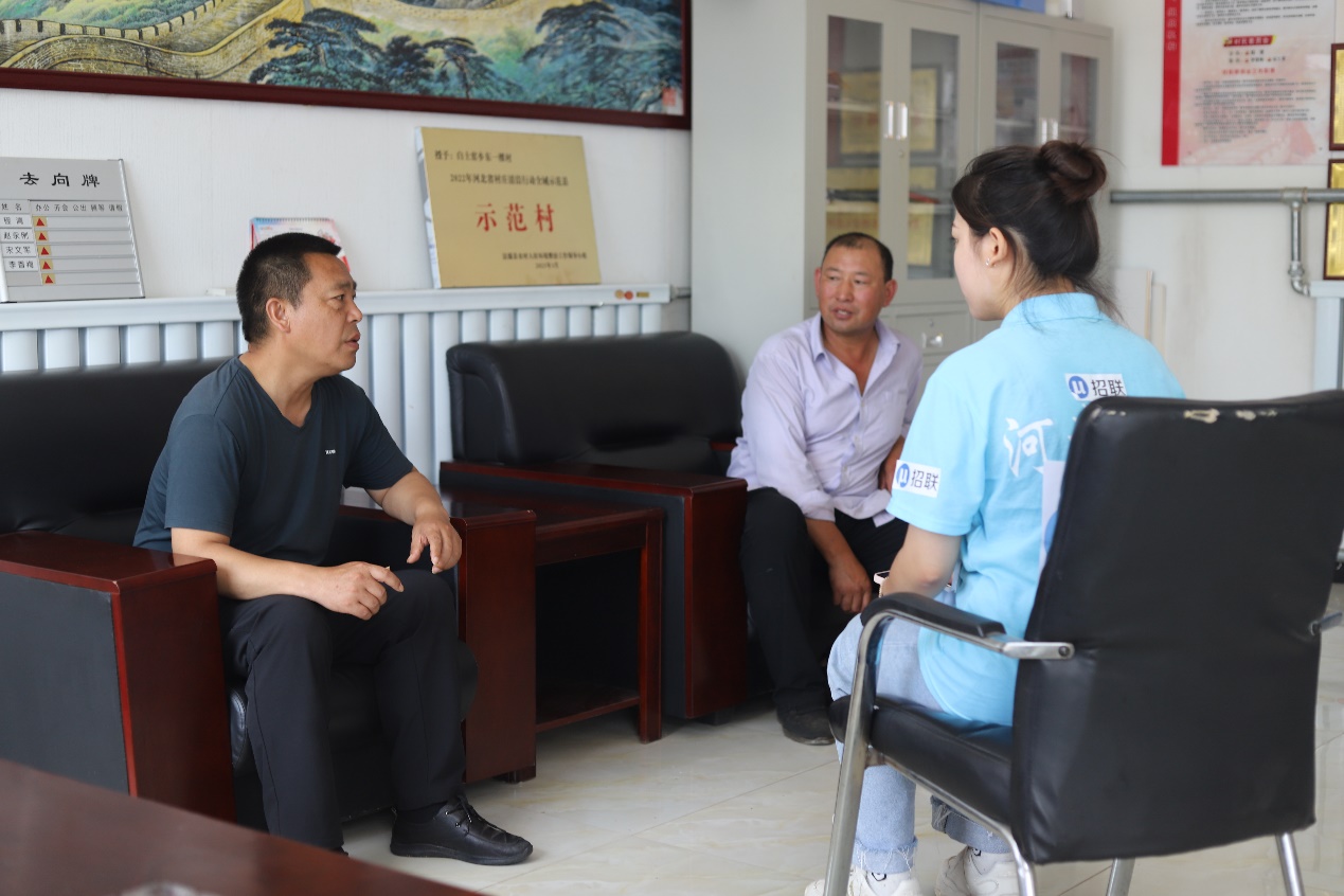 图为采访白土窑乡东一棵村村支书及驻村第一书记,了解村里藜麦种植面对的机遇与挑战。中国青年网通讯员 曹娜 摄