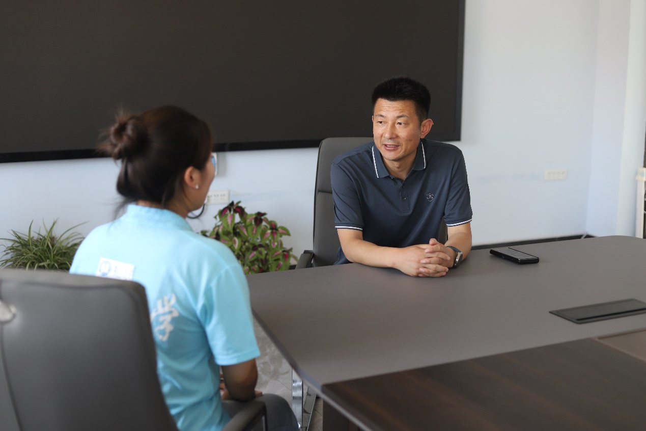 图为队员采访沽源县北麦生态有限公司厂长。中国青年网通讯员 谢艾茜 摄