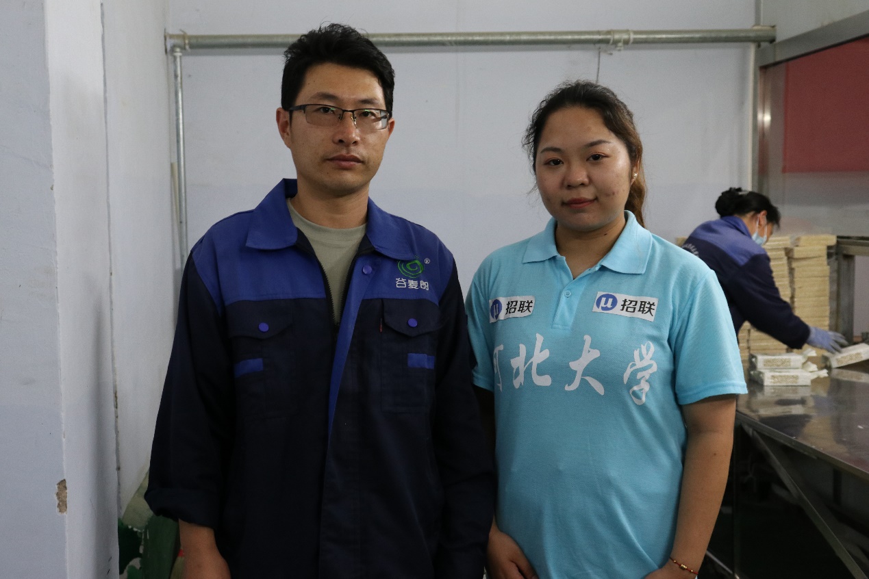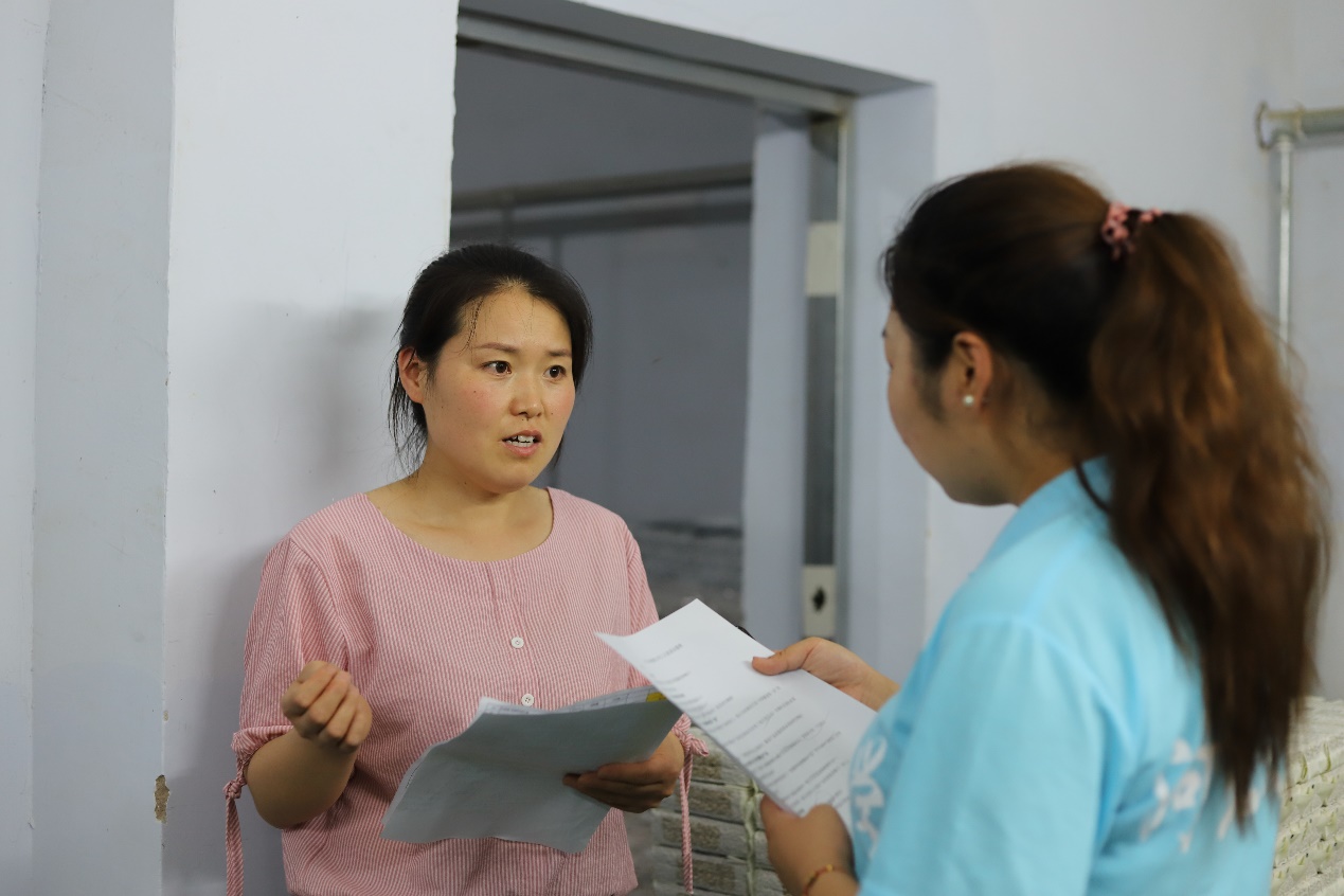 图为采访沽源县北麦生态有限公司车间主任,了解工人每天的工作内容。中国青年网通讯员 曹娜 摄