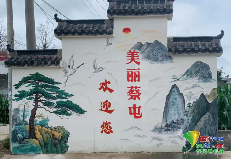 图为实践团成员绘制作品“美丽蔡屯欢迎您”。王佳 供图