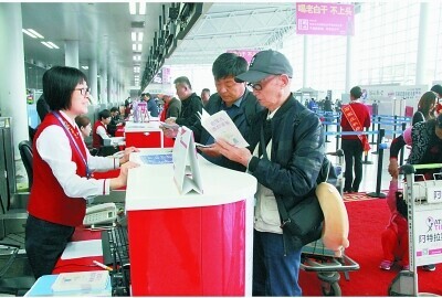 “关于老年人乘坐飞机,各家航空公司也都有不同的规定和风险提示,例如国航对老年人的年龄没有限制,但前提是旅客的身体健康适于乘坐飞机,且建议有健康成年人陪同乘坐。有的小航空公司则要求年满70岁及以上老人提供《特殊旅客乘机申请书》(一式两份),最迟于航班预计起飞时间前120分钟到达航班始发地机场办理乘机登记手续。”该机票专家表示,除了乘机的相关规定,很多航空公司也为老人提供相应的特殊旅客服务。比如,海南航空在北京、太原、海口、西安等地都可以为单独出行的年满60岁旅客提供无陪伴服务,协助乘机,东航的无陪伴年长旅客申请条件则为年满70岁且单独出行。
