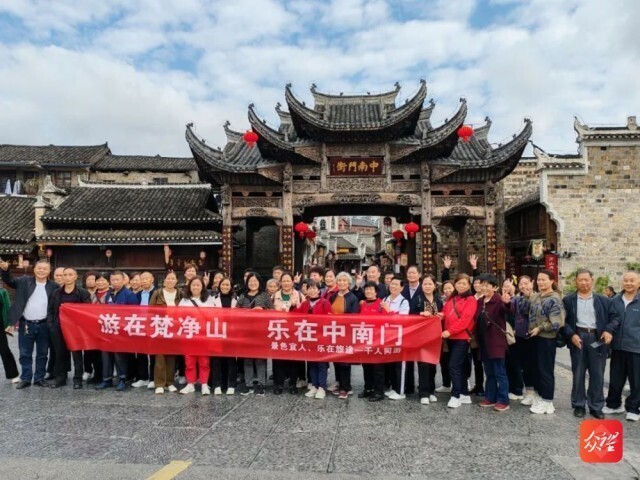 多彩贵州网讯(张丁方)秋高气爽,户外休闲游玩正当时。10月8日,铜仁市碧江区迎来了入秋以来近千人的旅游团队。大家漫步在古韵典雅的老城里,感受古城的历史厚重感,走进九龙洞温泉度假庄园,开启养生之旅……