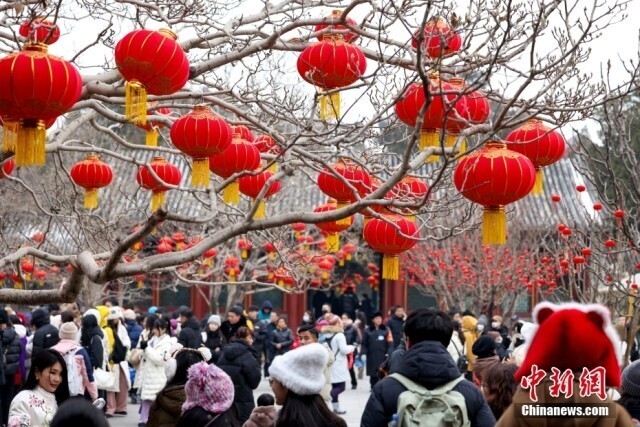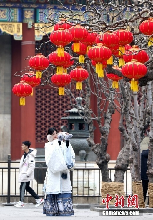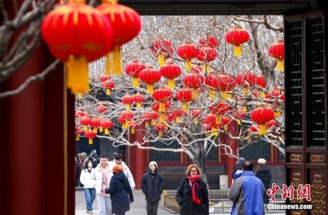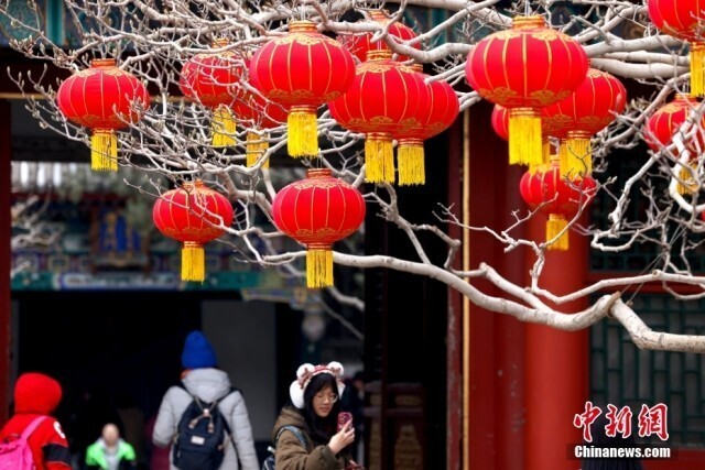1月17日,北京颐和园悬挂的红灯笼,营造出喜庆的节日氛围。