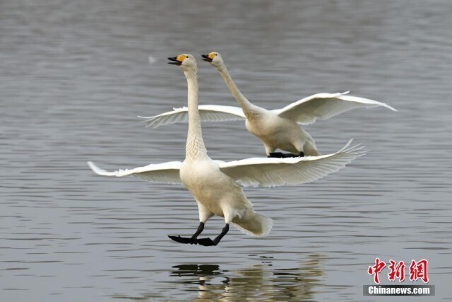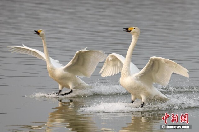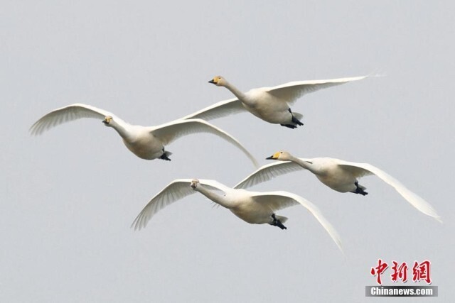 图为准备开启北迁之旅的大天鹅。
