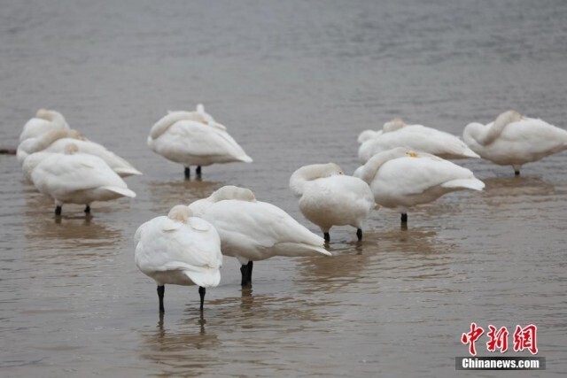 图为准备开启北迁之旅的大天鹅在储存体力。
